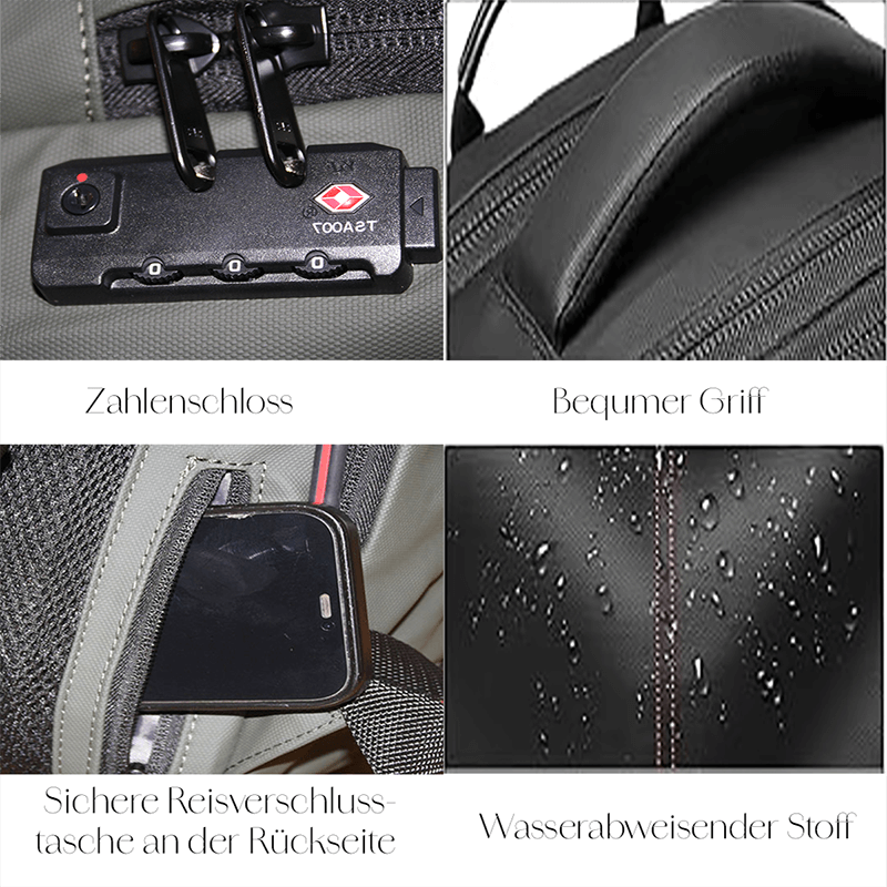 Durch das Zahlenschloss und der verdecktliegenden Reißverschlusstasche, ist das erkunden neuer Ziele garantiert.